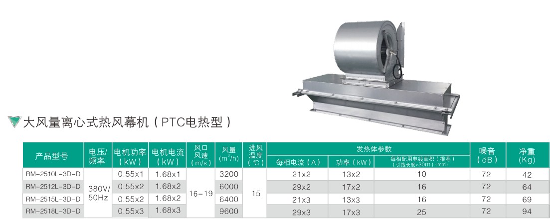 大風(fēng)量離心式熱風(fēng)幕機(jī)(PTC電熱型)